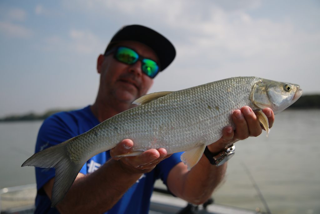 Kdo mě zná, ví, že kromě lovu kaprů mám rád i přívlač a je pro mě důležité občas pronásledovat i dravé ryby. Na tuto rybačku jsme s kamarádem Tomim Hodulou vyrazili k Dunaji, na jeho úsek mezi Ercsim a Százhalombattou. Lovili jsme woblerem boleny, s Jigem jsme hledali candáty obecné a východní. Bylo velké horko, měl jsem pochybnosti, zda něco vůbec ulovíme. Tomi mě uklidnil, že se určitě něco chytne, že budeme mít dobrý den, a i sumec možná zabere. Z přístaviště převozu v Ercsi jsme se přesunuli do části Újfalu, voda měla kolem 4 metrů, tady jsme hledali zlomy a na nich candáty. Gumy jsme vedli na vrcholu zlomu, kde se záhy dostavily i záběry. Rychlými skoky jsme prokleply téměř celý zlom.