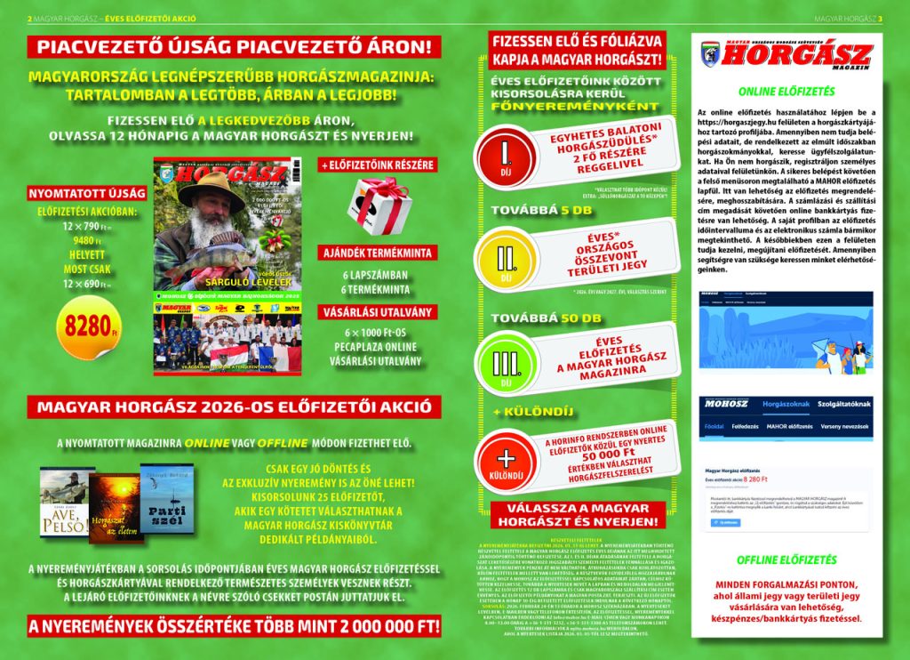 Magyar Horgász éves előfizetői akció 2 000 000 Ft nyereménnyel