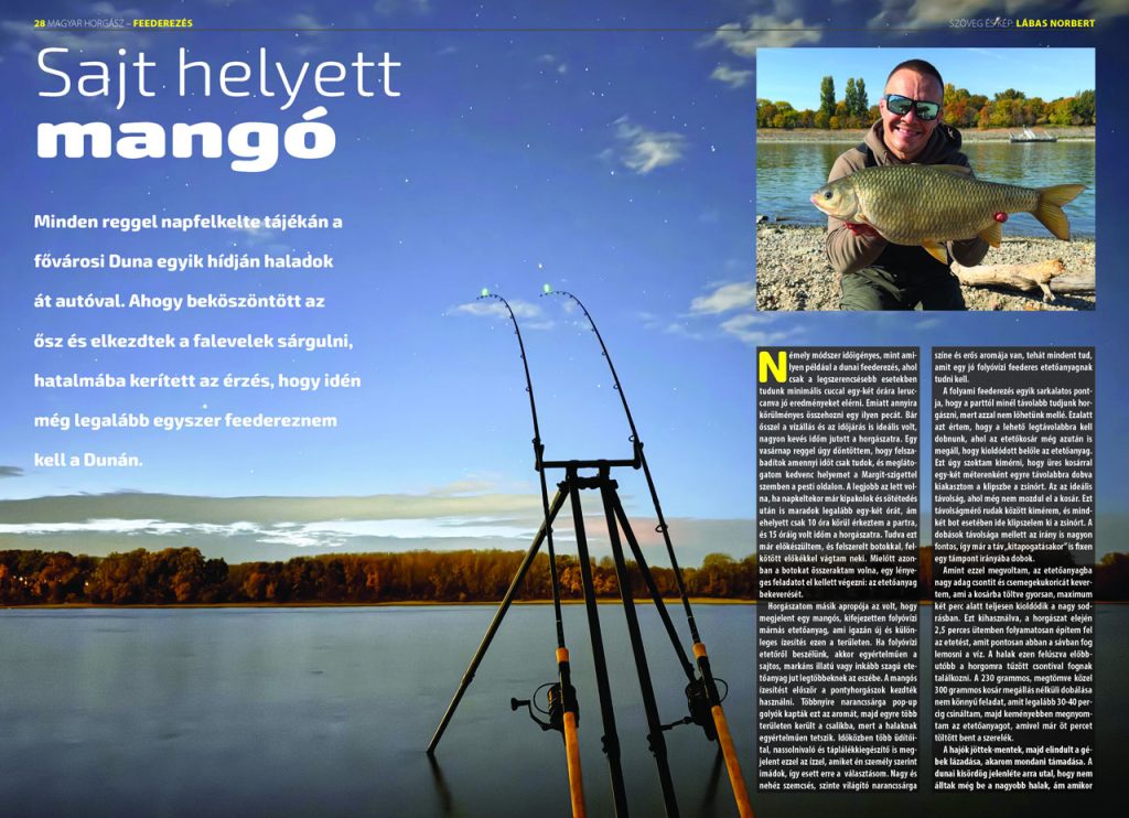 Minden reggel napfelkelte tájékán a fővárosi Duna egyik hídján haladok át autóval. Ahogy beköszöntött az ősz és elkezdtek a falevelek sárgulni, hatalmába kerített az érzés, hogy idén még legalább egyszer feedereznem kell a Dunán.