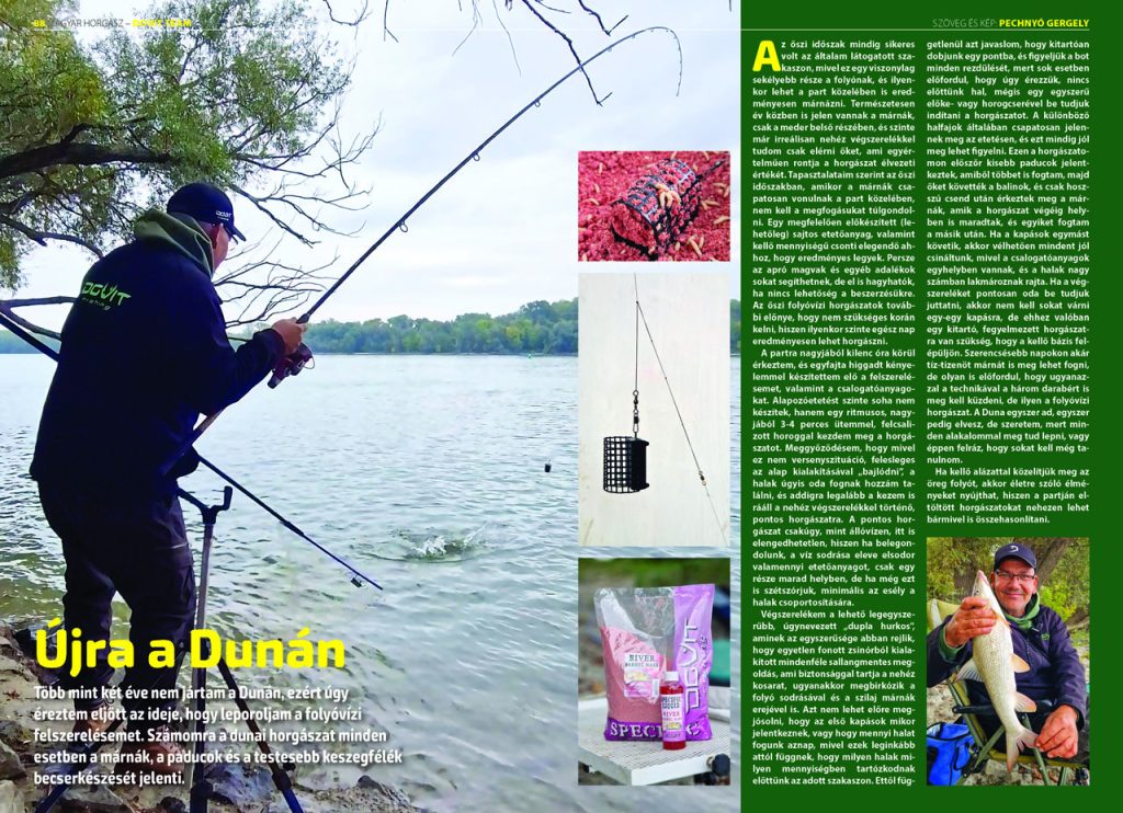 Az ősz a folyóvízi horgászatok időszaka, ezért amikor csak időm engedi a Dunán horgászom és kergetem azokat a halakat, amiket állóvizekben nem találok meg. A folyóvízi halak szépsége semmihez sem hasonlítható. Annak az „őserőnek” és dinamizmusnak, amivel a márnák, a szilvák vagy a jászok védekeznek, egyszerűen nincsen párja. Na meg a kapás. Egy-egy jobb márna képes letépni a botot a tartóról, amennyiben kissé lankad a figyelem. Olyan élmények érik az embert folyóvizeink partján, amelyek miatt szerintem megéri egy esetleges nullázás kockázatát is vállalni.