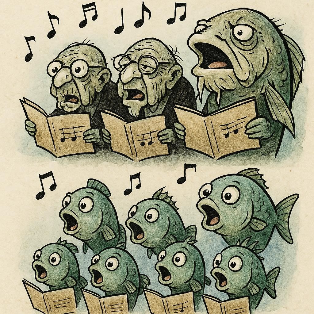 CORUL PEȘTILOR TINERI – Vocea progresului, a neînțelegerii și a ironiei.